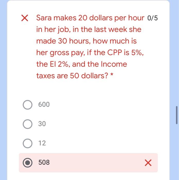 Solved X Sara Makes 20 Dollars Per Hour 0 5 In Her Job In Chegg Com